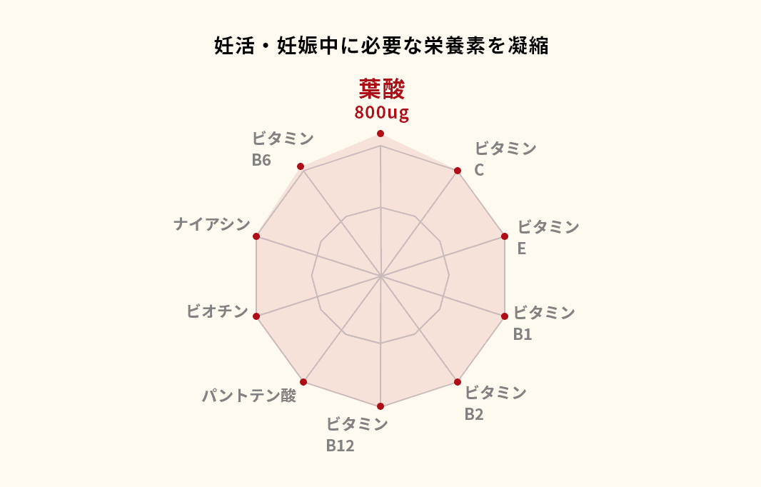 「てんしのたまご」を選んでいただける理由の第一位は「葉酸800μg配合」だと言っていただいています。